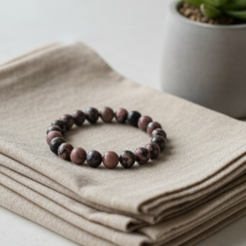 The Rhodonite Crystal Bracelet is a powerful heart-healing stone known for clearing emotional wounds and scars from the past. It gently nurtures love, compassion, and understanding while encouraging forgiveness—both toward others and yourself.